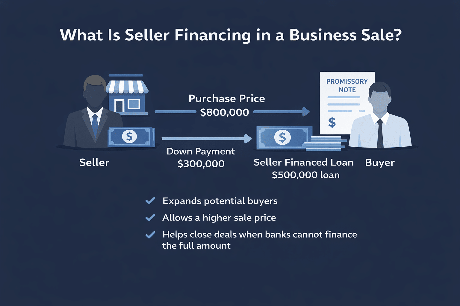 For you as the seller, understanding seller financing becomes essential. In a seller-financed business sale, you agree to accept part of the purchase price later rather than receiving the entire amount in cash at closing. The unpaid balance becomes a loan owed by the buyer.